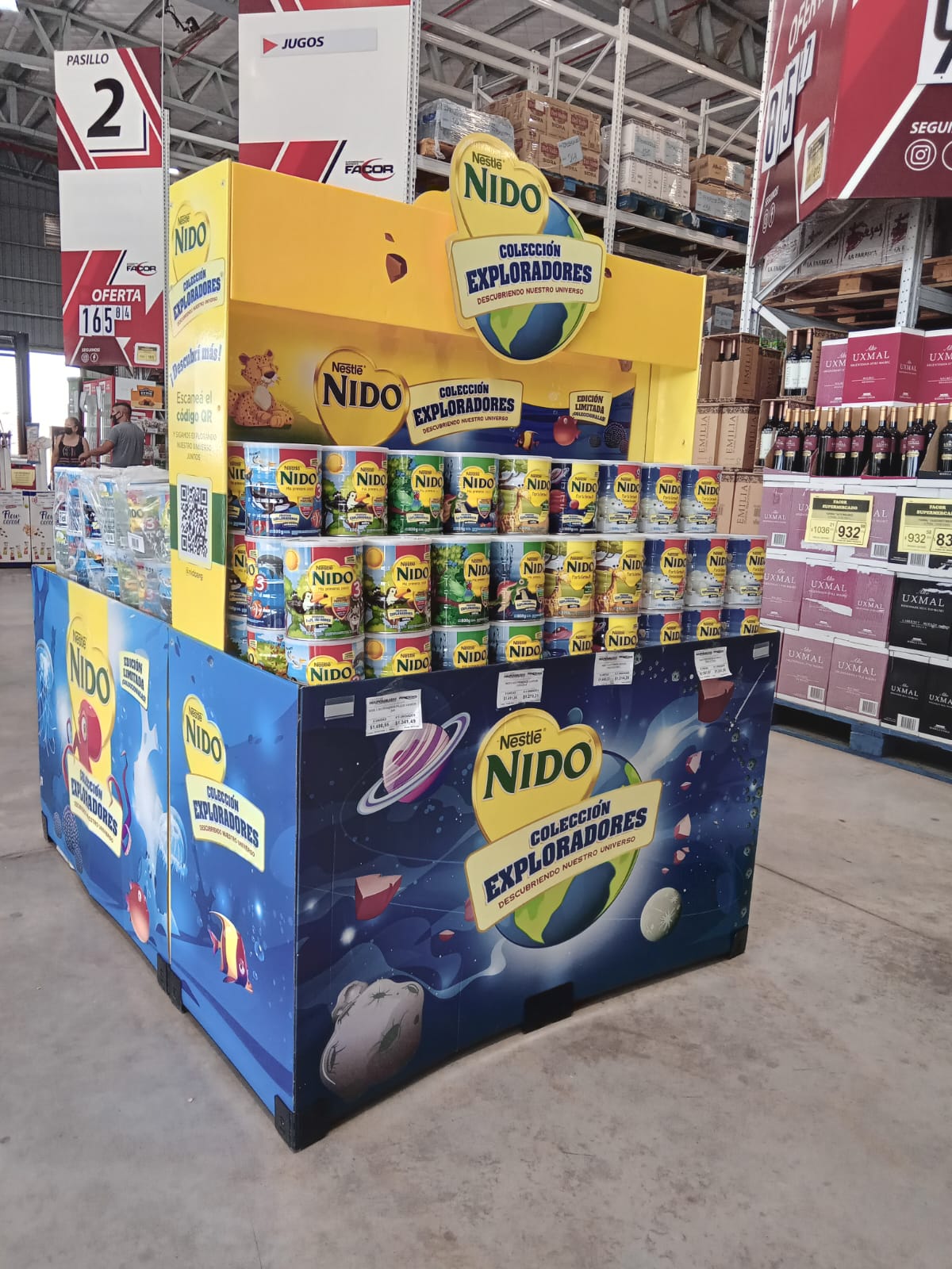 Se propone la realización de Botaderos, Racks, Islas para supermercados, islas para Mayoristas y punteras de góndola.-Se realizaron todos los elementos con cartón microcorrugado Ecoboard con impresión digital.-
