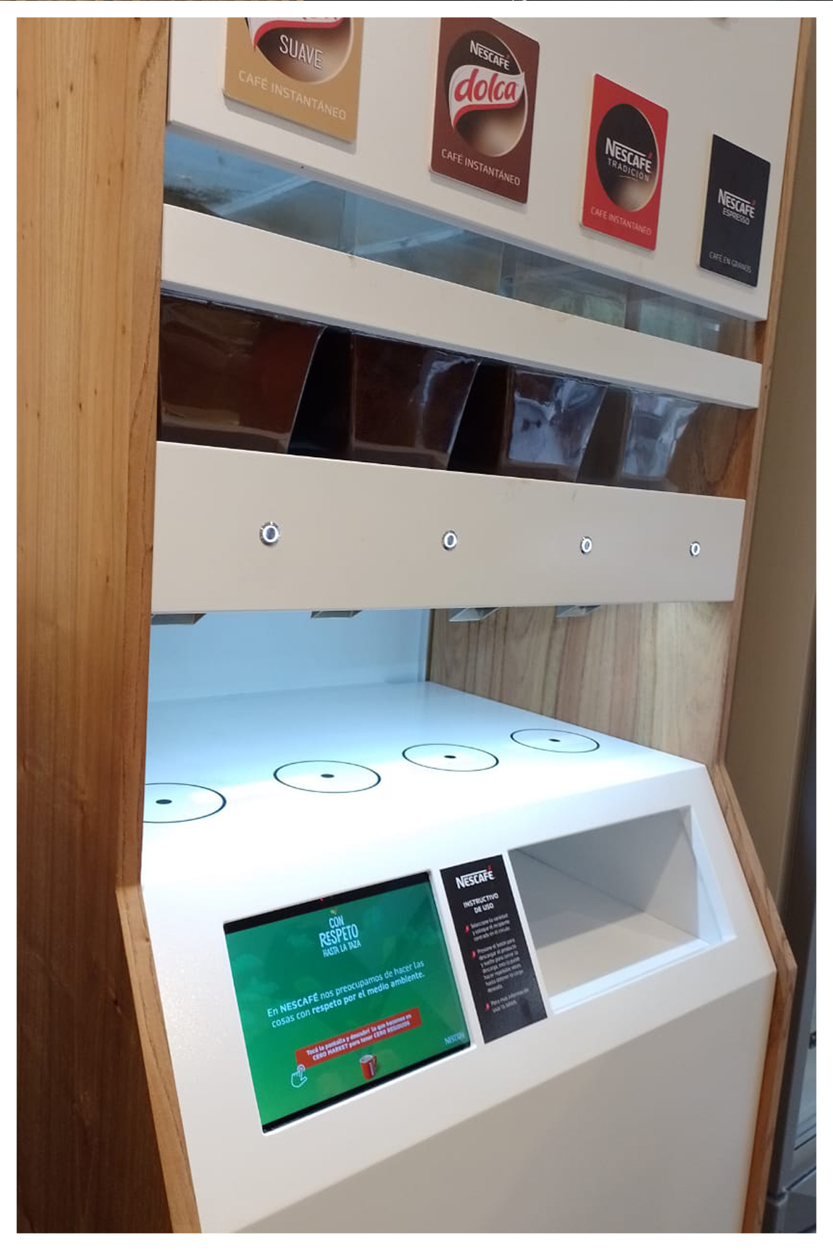 NESTLÉ NOS SOLICITÓ PARA SU MARCA NESCAFÉ EL DESARROLLO DE UN DISPENSER DE CAFÉ PARA LA CADENA CERO MARKET, EL PRIMER SUPERMERCADO QUE TRABAJA AL 100% EN LA ELIMINACIÓN DE PLÃSTICOS.