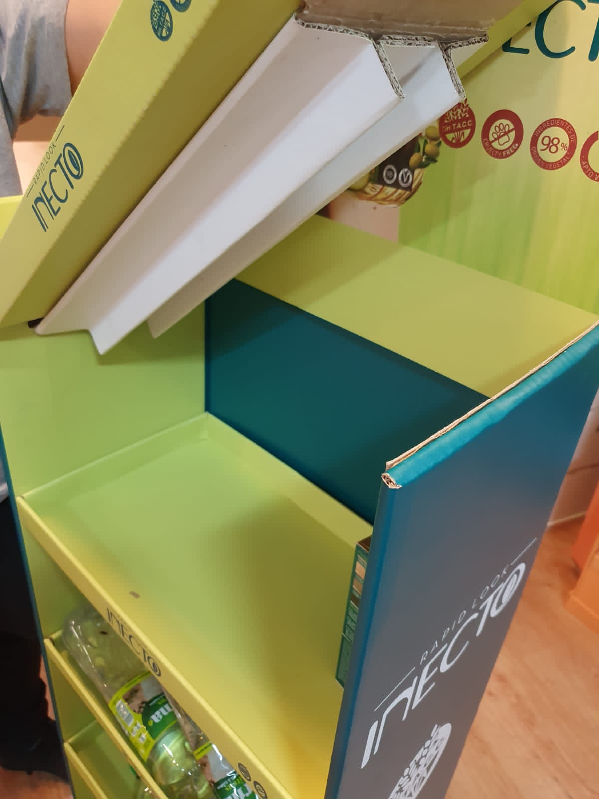 El cliente pidió un exhibidor para su exhibición de cajas de tinturas, con un material sustentable acorde a su campaña ecológica