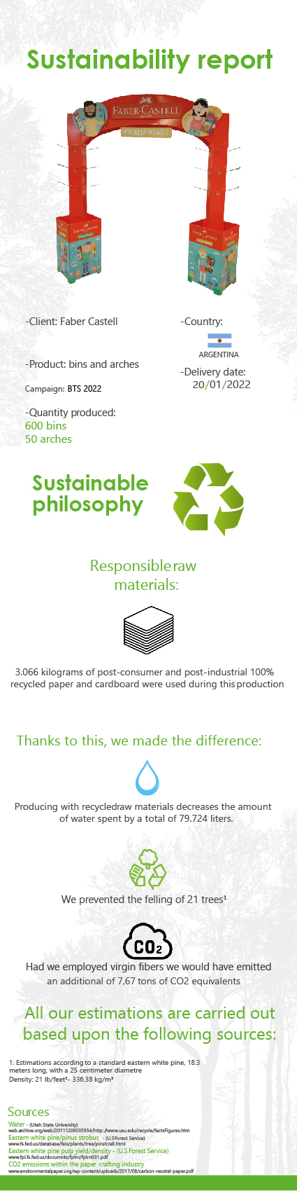 Utilizamos como base de la campaña los botaderos de armado rápido, que se entregan en una sola pieza, plegados, y listos para dejar armados en 15 segundos. Fabricados con material reciclado, y con unas patas plásticas (también reciclado) que lo levantan del piso para evitar el contacto del cartón con la humedad.