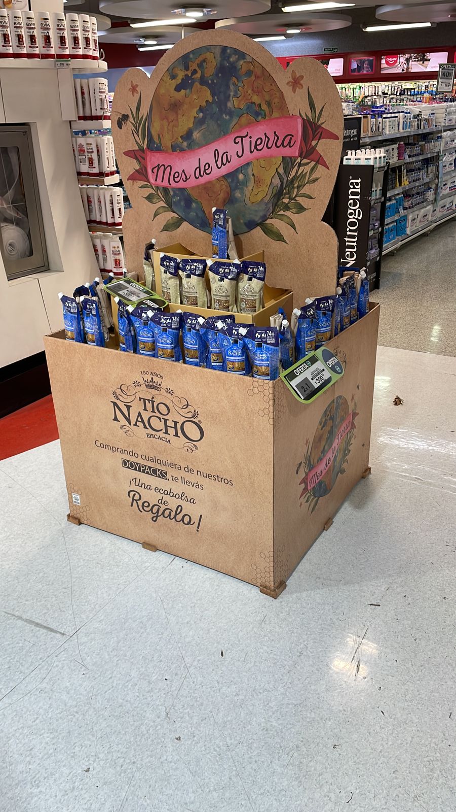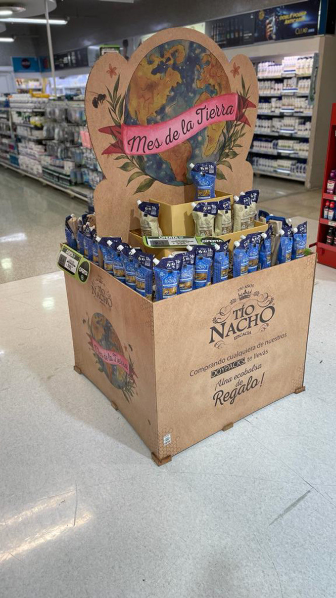 La Isla Tio Nacho logró una clara diferenciacion con alto look sustentable gracias a los materiales utilizados. Hecho 100% en material reciclado y reciclable para acompañar la ejecución de la dinámica propuesta con la marca por el Dia de la Tierra.
