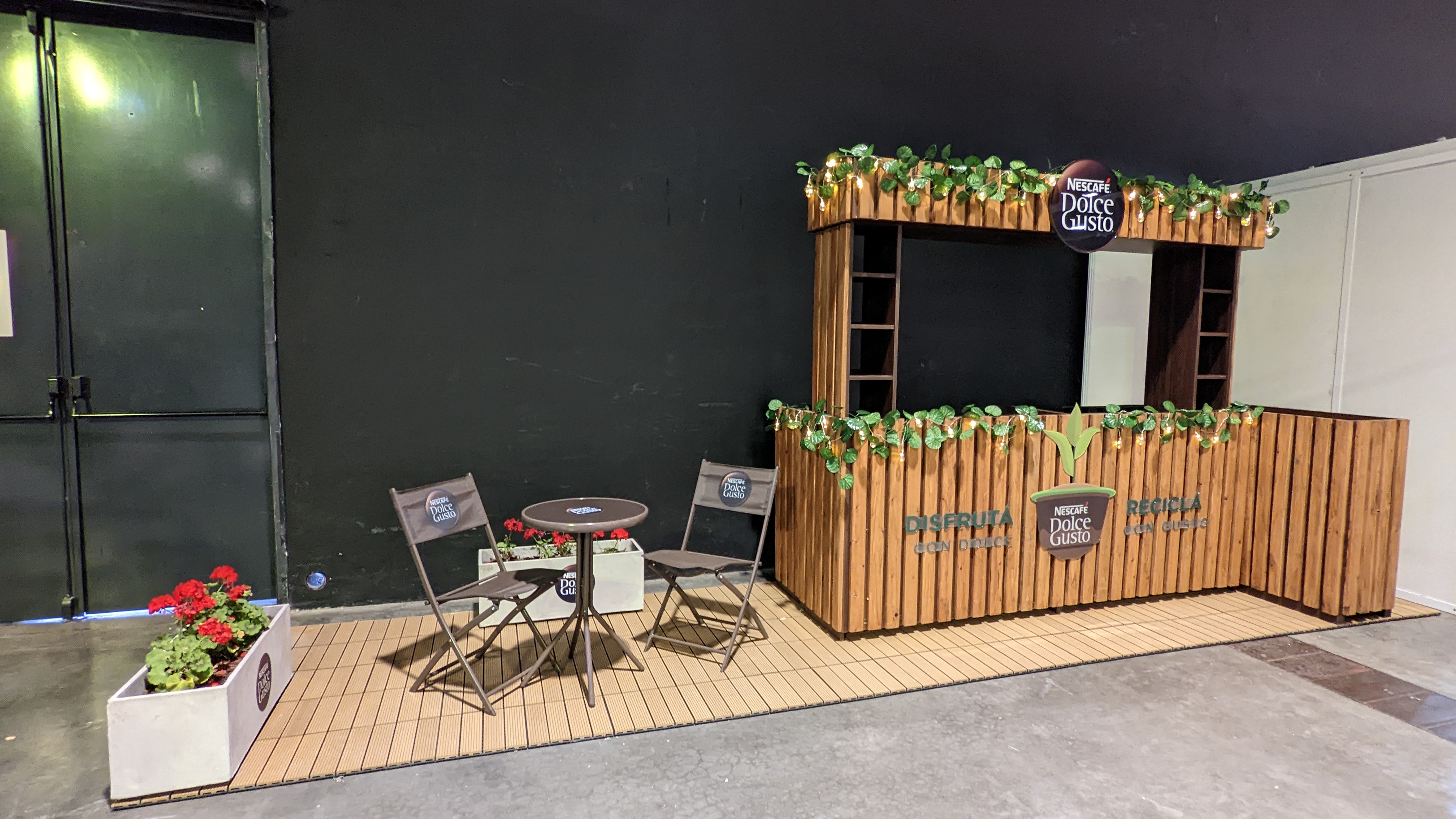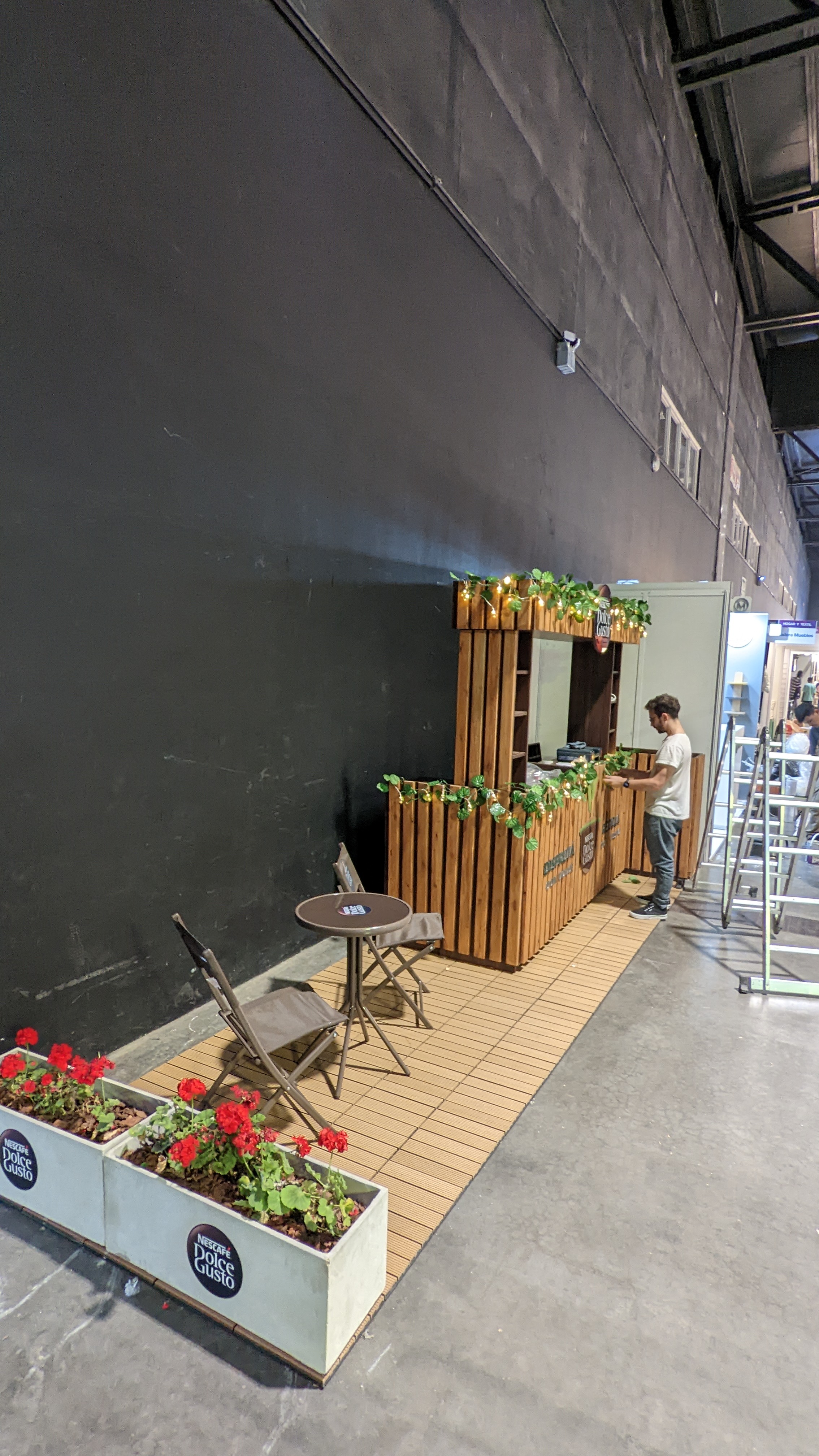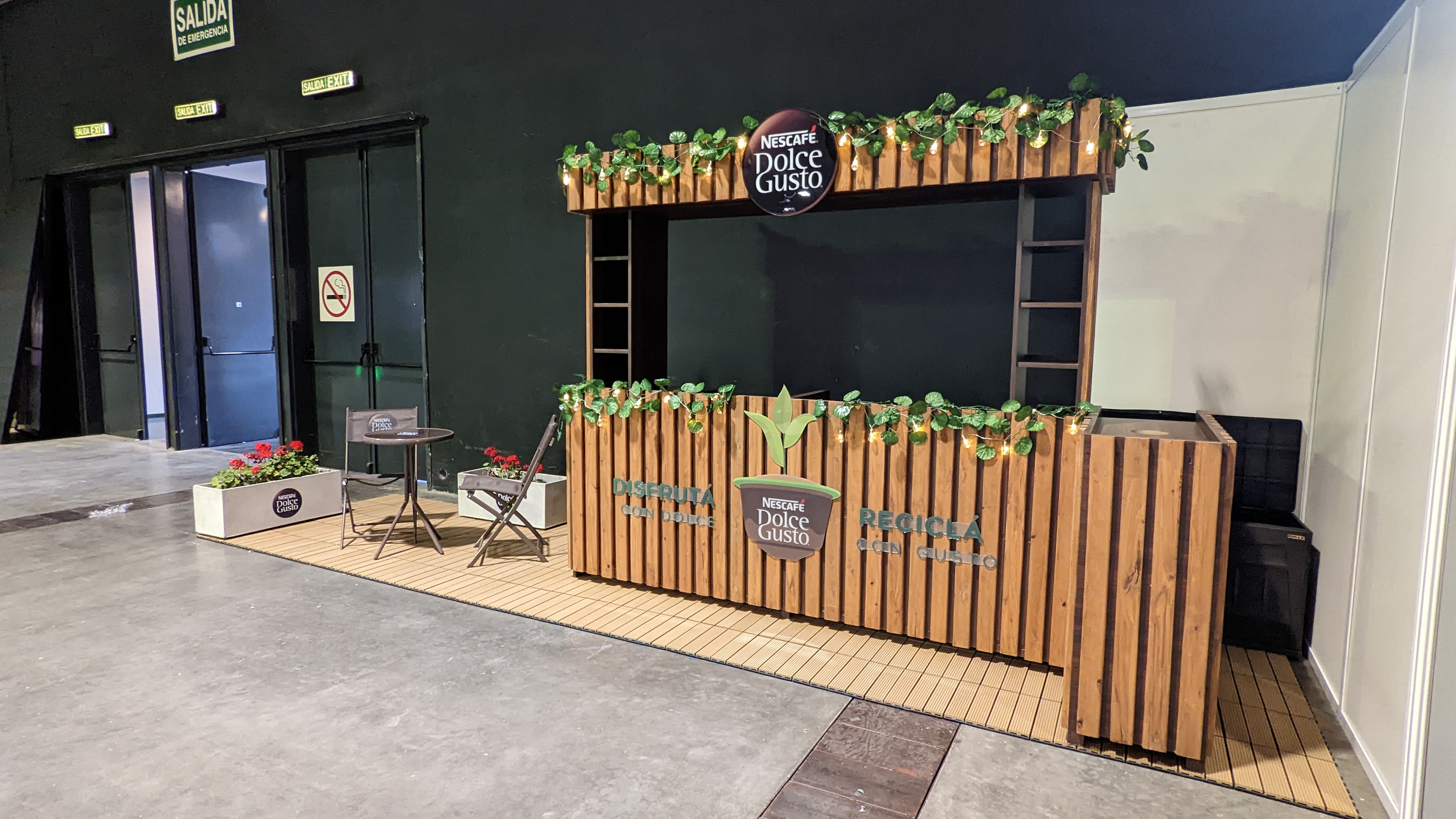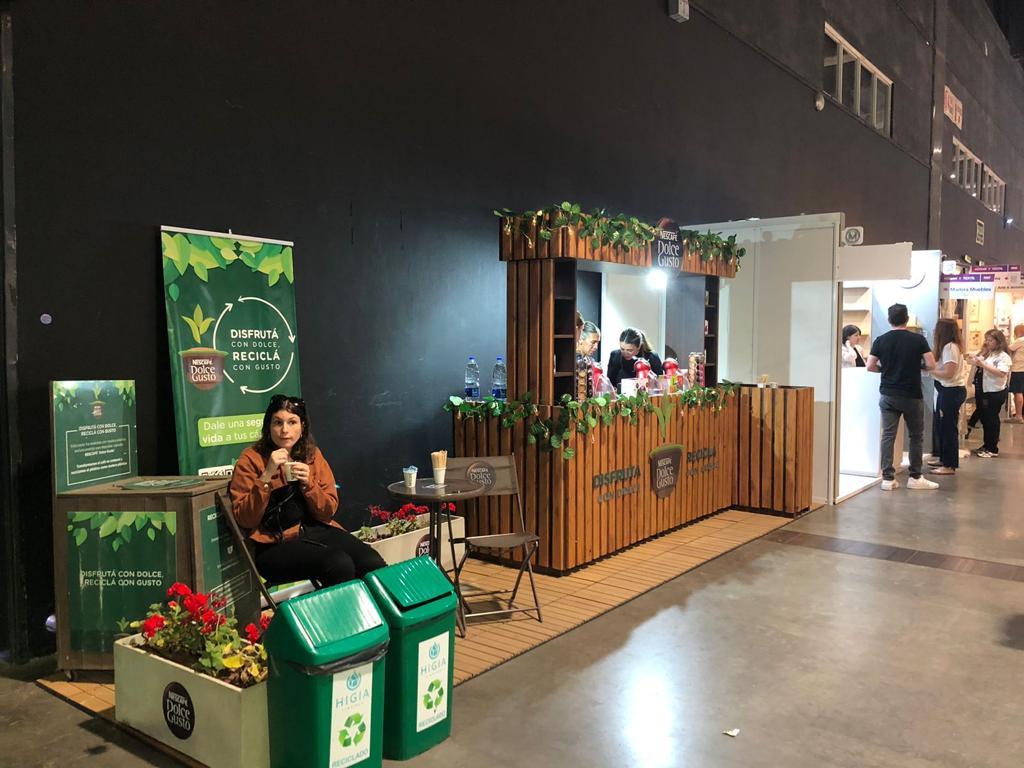 El stand debia tener espacio para exponer las cafeteras y un lugar donde la gente pueda hacer degustacion del cafe sentada en el stand.