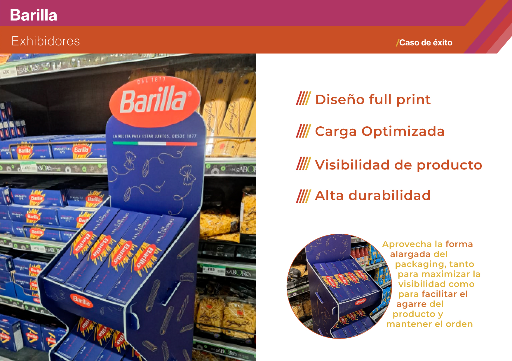El desafío fue diseñar un exhibidor para supermercados que transmitiera el carácter gourmet, premium e importado de Barilla en un entorno cargado de estímulos visuales. La premisa fue resolver una tensión clave: el producto debía presentarse con una estética cuidada y de alta gama, pero a través de una exhibición liviana y de bajo costo logístico, fácil de transportar y montar. El cliente buscaba otorgar protagonismo absoluto a la marca y sus pastas, resaltando orden, calidad y confianza. Los objetivos fueron diferenciarse de la competencia, guiar la elección del shopper y convertir al exhibidor en un recurso estratégico para reforzar la identidad de Barilla como referente de categoría.