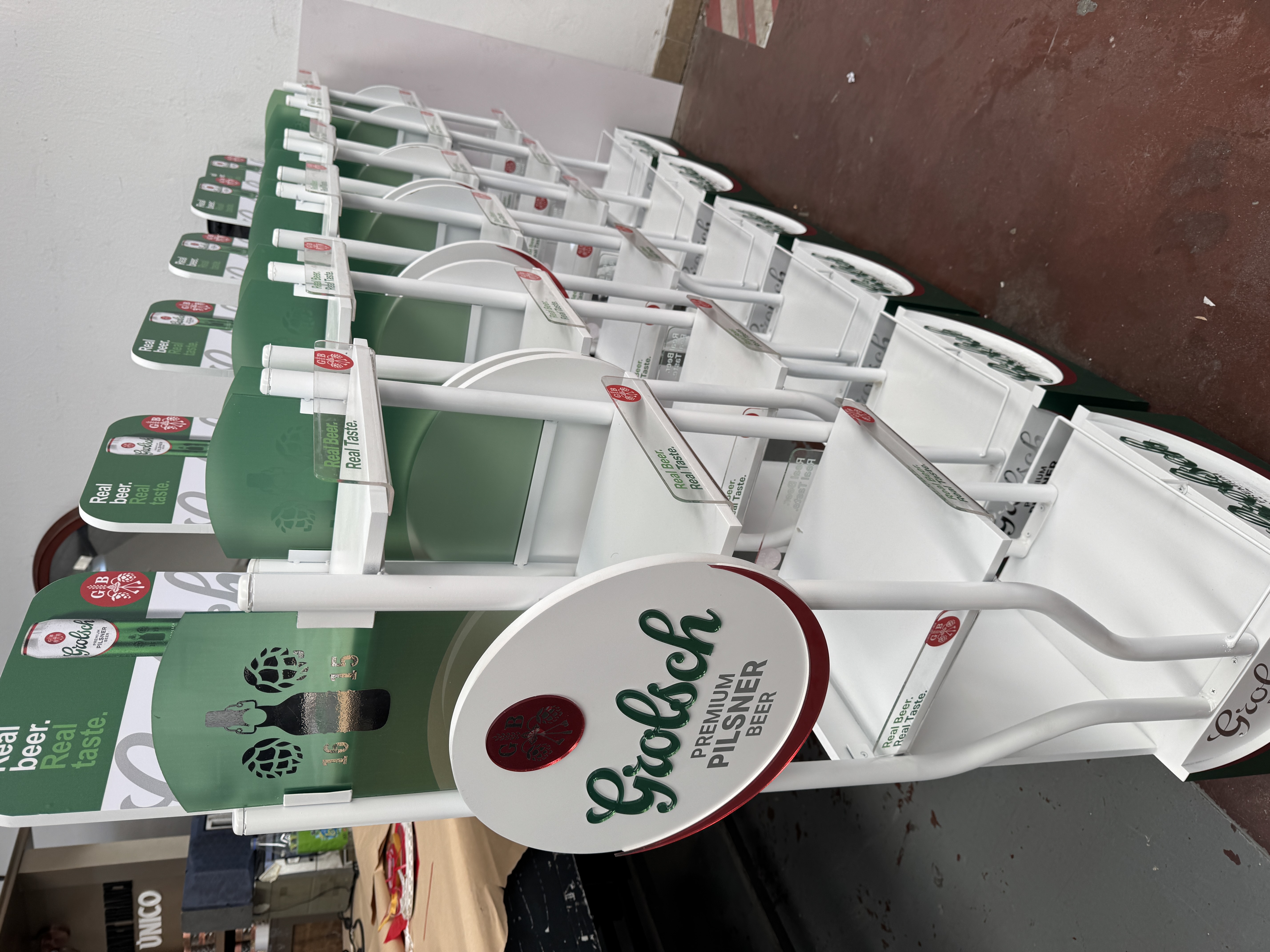 La marca buscó aumentar su facing en el canal supermercado a través de la conquista de espacios adicionales dentro de las bocas con un material que transmita la estética de la marca con materiales acordes al segmento de cervezas premium en el que compite.