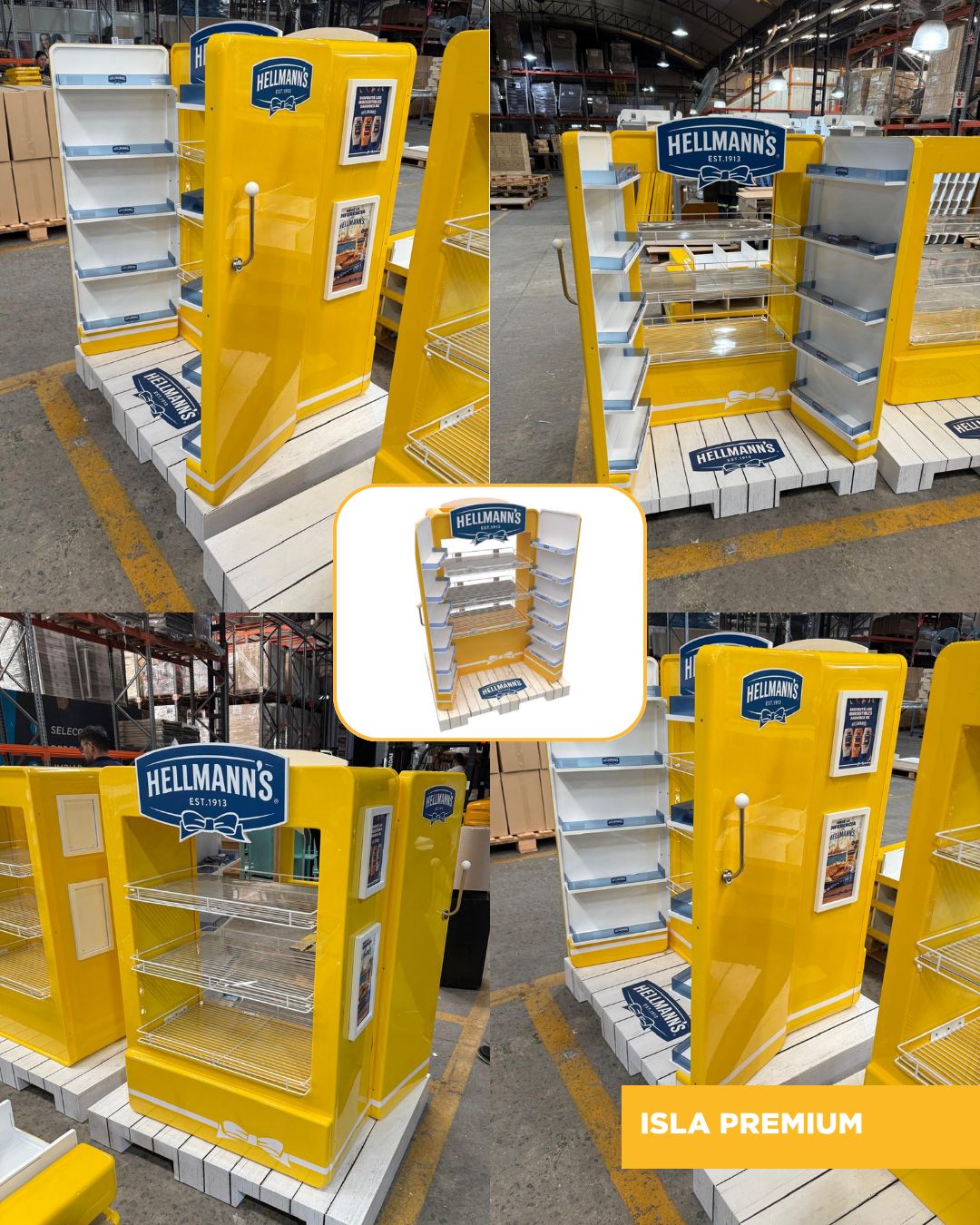 Esta isla debía inspirarse en un refrigerador vintage para generar una asociación emocional con el hogar y la cocina clásica. Este elemento es parte de un kit de exhibidores basados en la misma premisa para Hellmann's , en esta versión se realizó en formato isla para una mayor capacidad de carga e impacto en los supermercados.