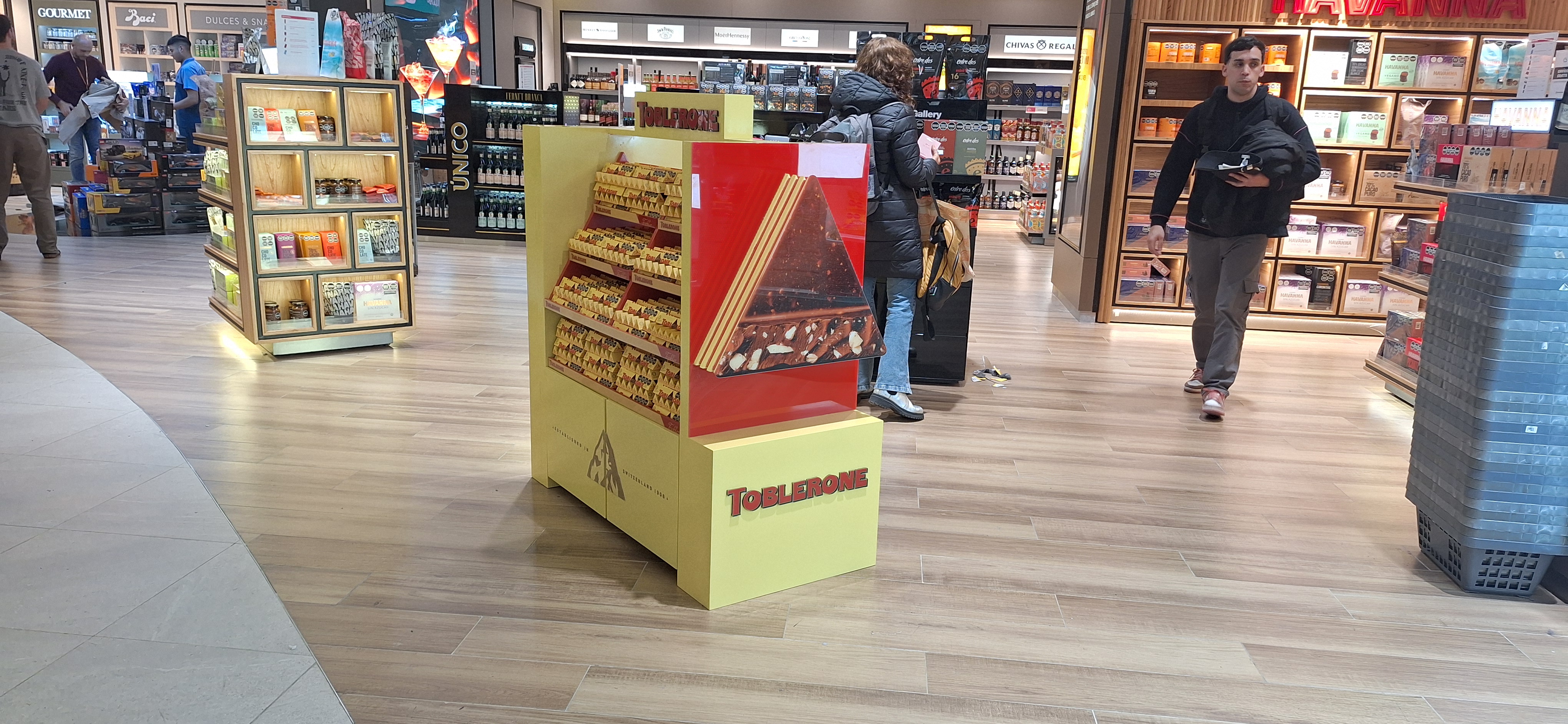 EN ESTE CASO SE HICIERON MUEBLES EMPOTRADOS PARA MILKA - PARA TOBLERONE E ISLA DE IMPACTO TOBLERONE - LA NECESIDAD PUNTUAL ERA EMBELLECER Y ORDENAR LA CARGA DE PRODUCTOS