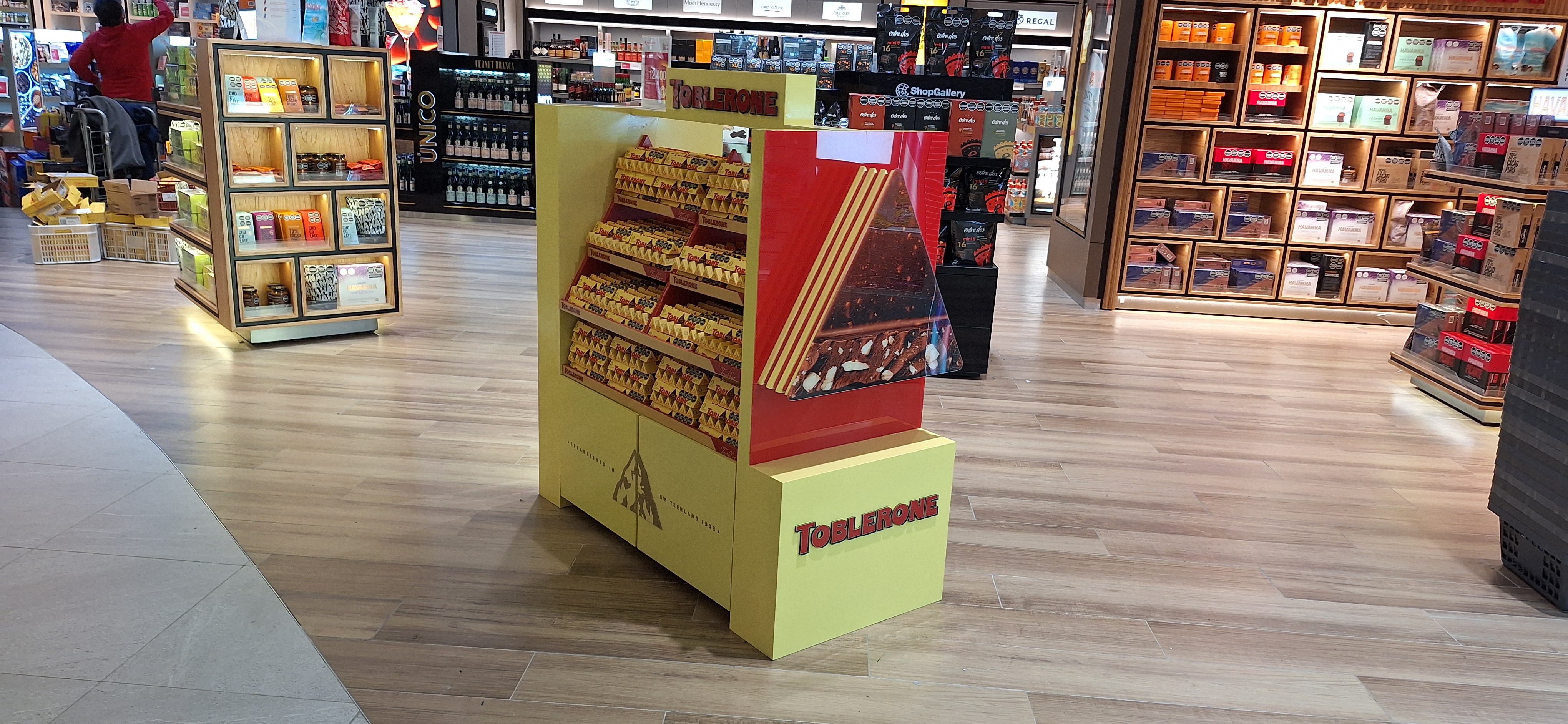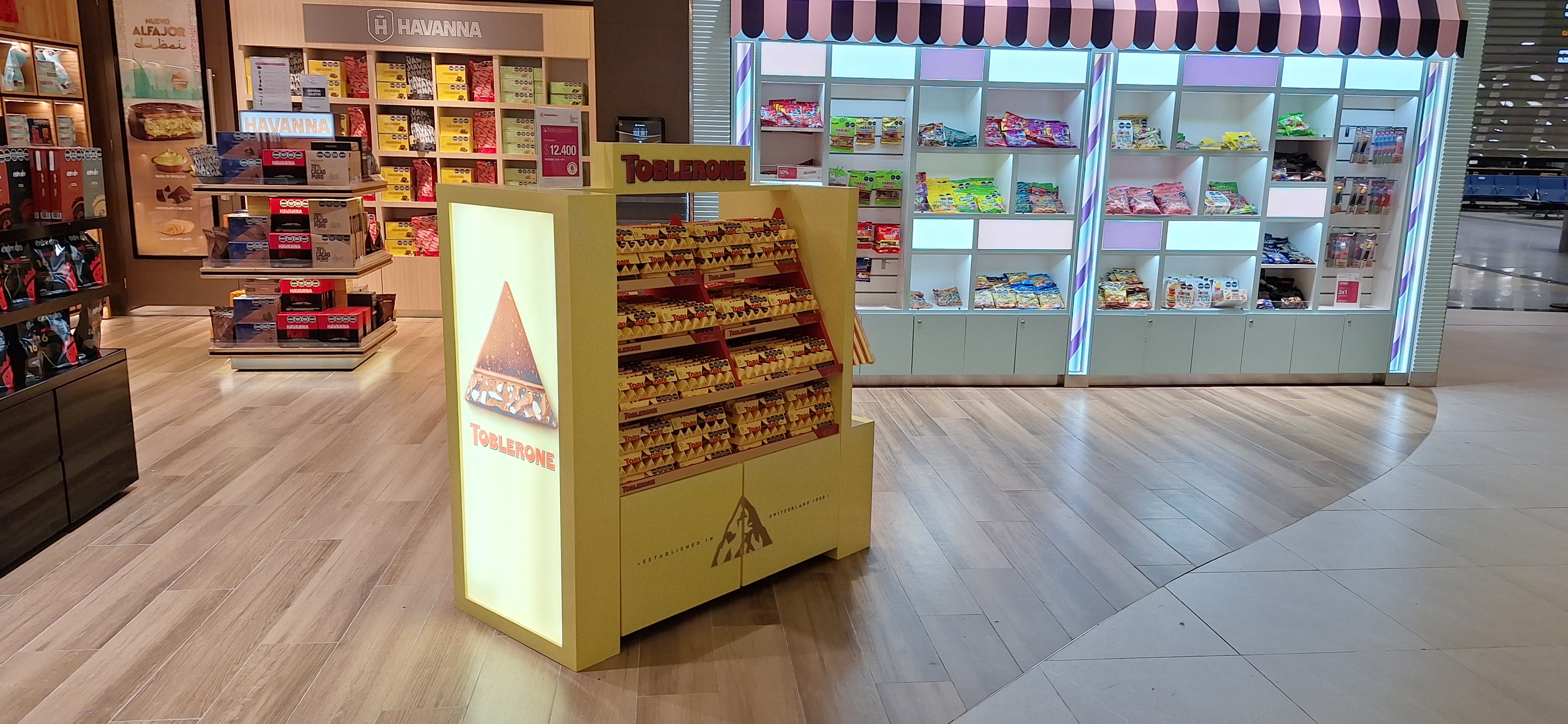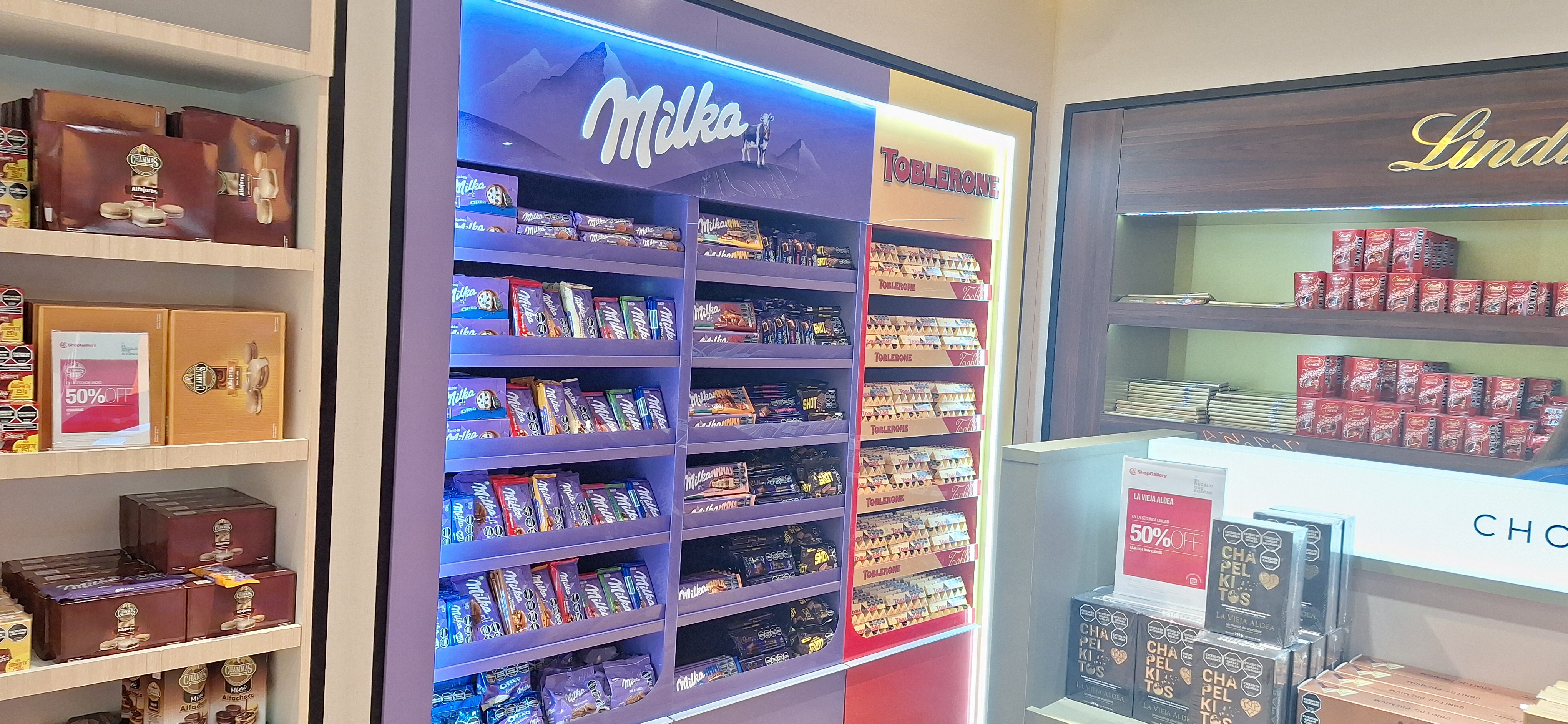 EL CLIENTE BUSCABA DESTACARSE EN TIENDA SHOP GALLERY. LA NECESIDAD NACIO A PARTIR DE UNA REDECORACION QUE ENCARO LA TIENDA Y RENOVO LA MISMA, NECESITABAN DESTACARSE CON SUS DOS MARCAS MAS FUERTES (MILKA Y TOBLERONE)TANTO EN PARED GONDOLA COMO EN ESPACIO ADICIONAL PARA COMPRA POR IMPULSO. EL CLIENTE CUANDO LLEGO A NOSOTROS TENIA LOS MUEBLES PREDISEÑADOS Y NOSOTROS ADAPTAMOS A MANUALES DE MARCA Y PETICIONES PUNTUALES DE LA TIENDA DONDE SE INTALARON LOS MUEBLES