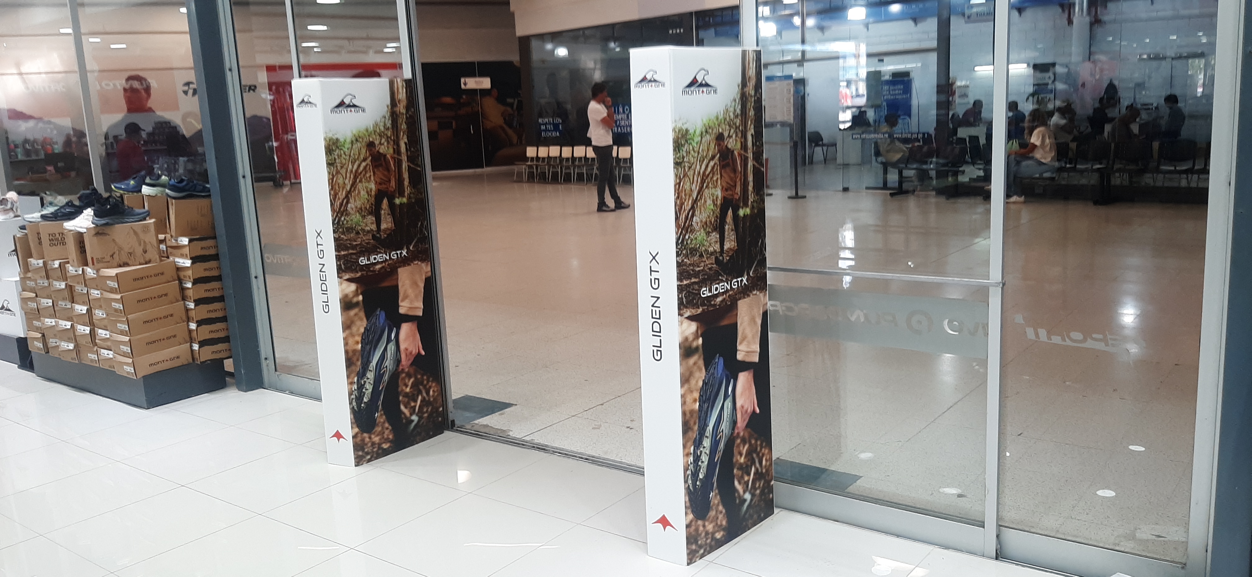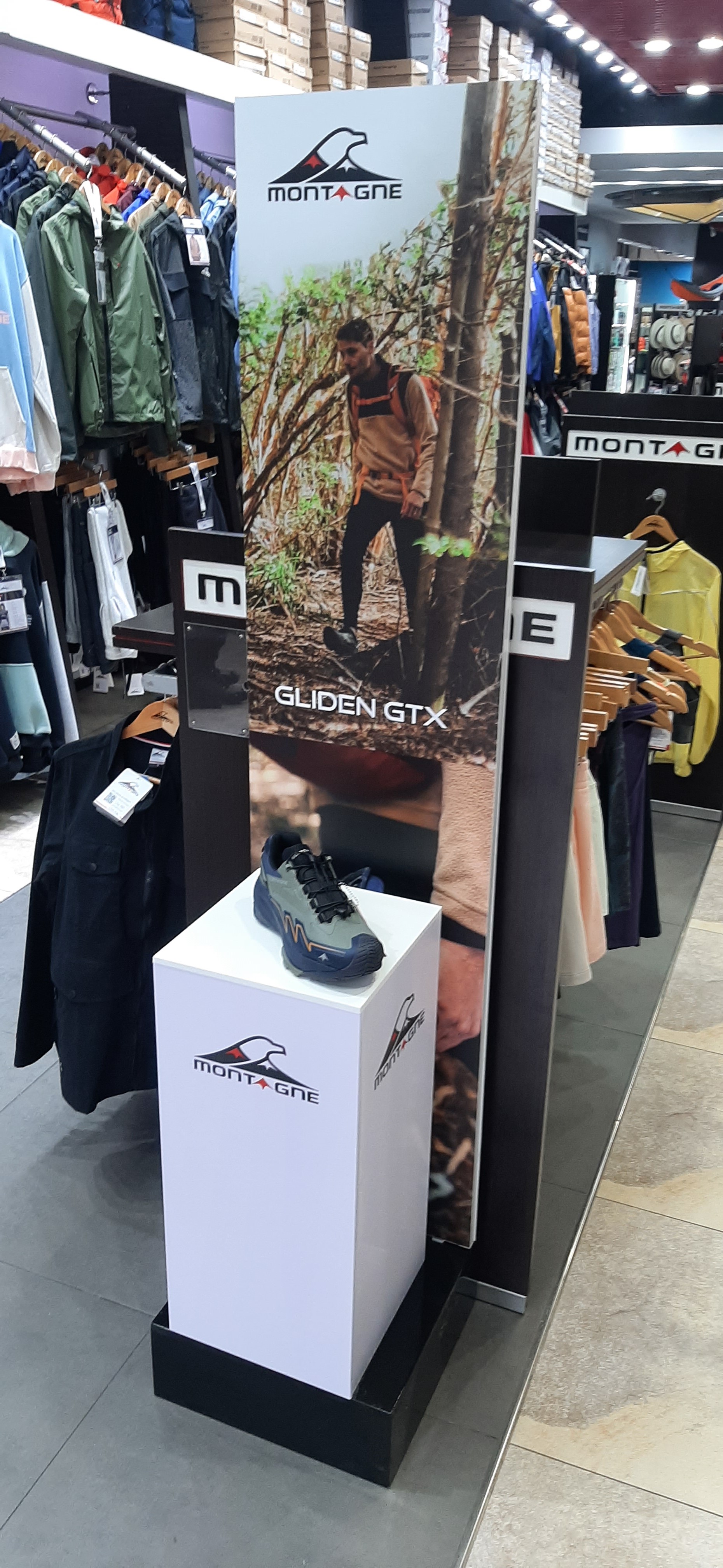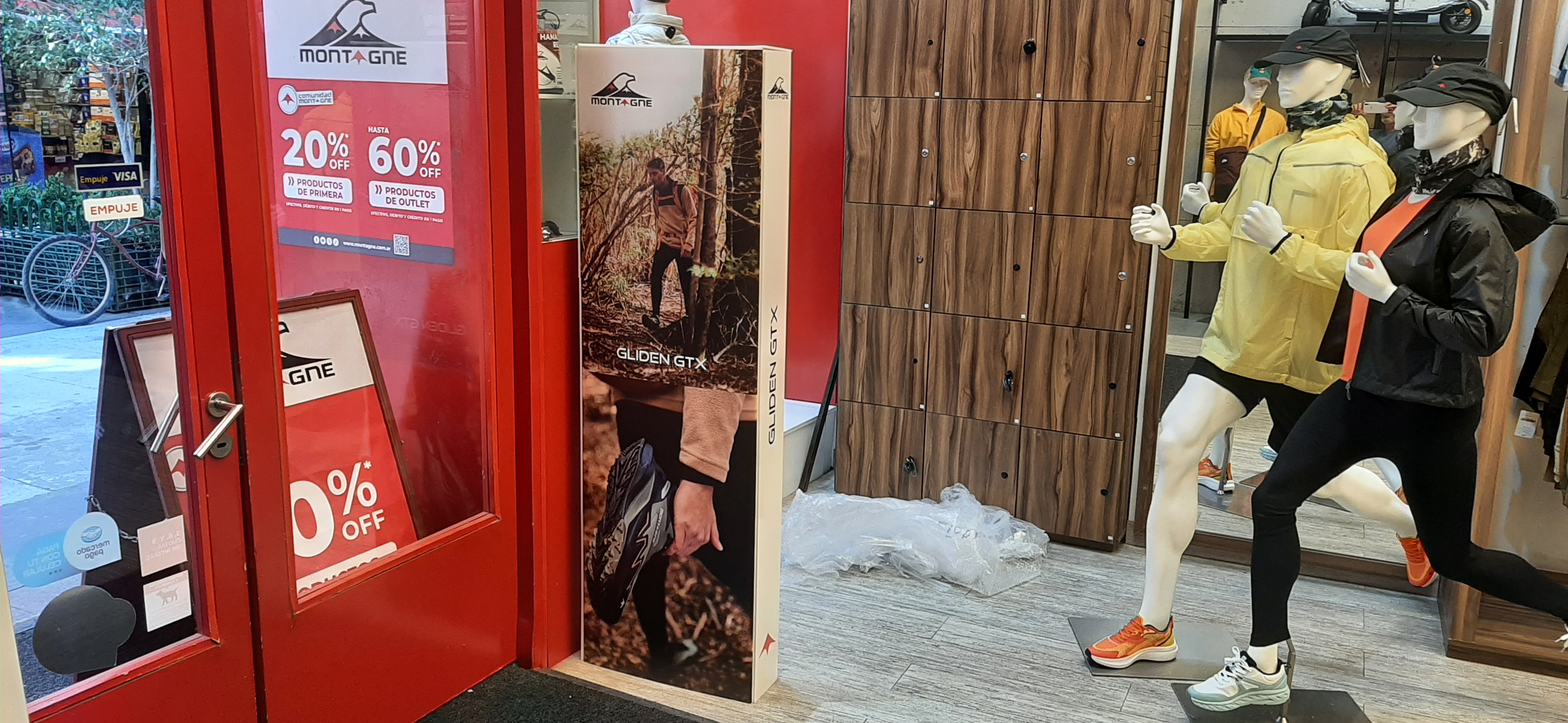 El cliente se acerco buscando materiales para los locales de calzado deportivo. Puntualmente buscaban comunicar este lanzamiento de zapatilla y comunicar todas sus cualidades. Para ello diseñamos distintos materiales livianos y pesados (tarimas de calzado zona lanzamiento, mesas de calzado vidriera, cubre alarmas, carteles paneles de calsado, table tents, cenefas apoya calzado