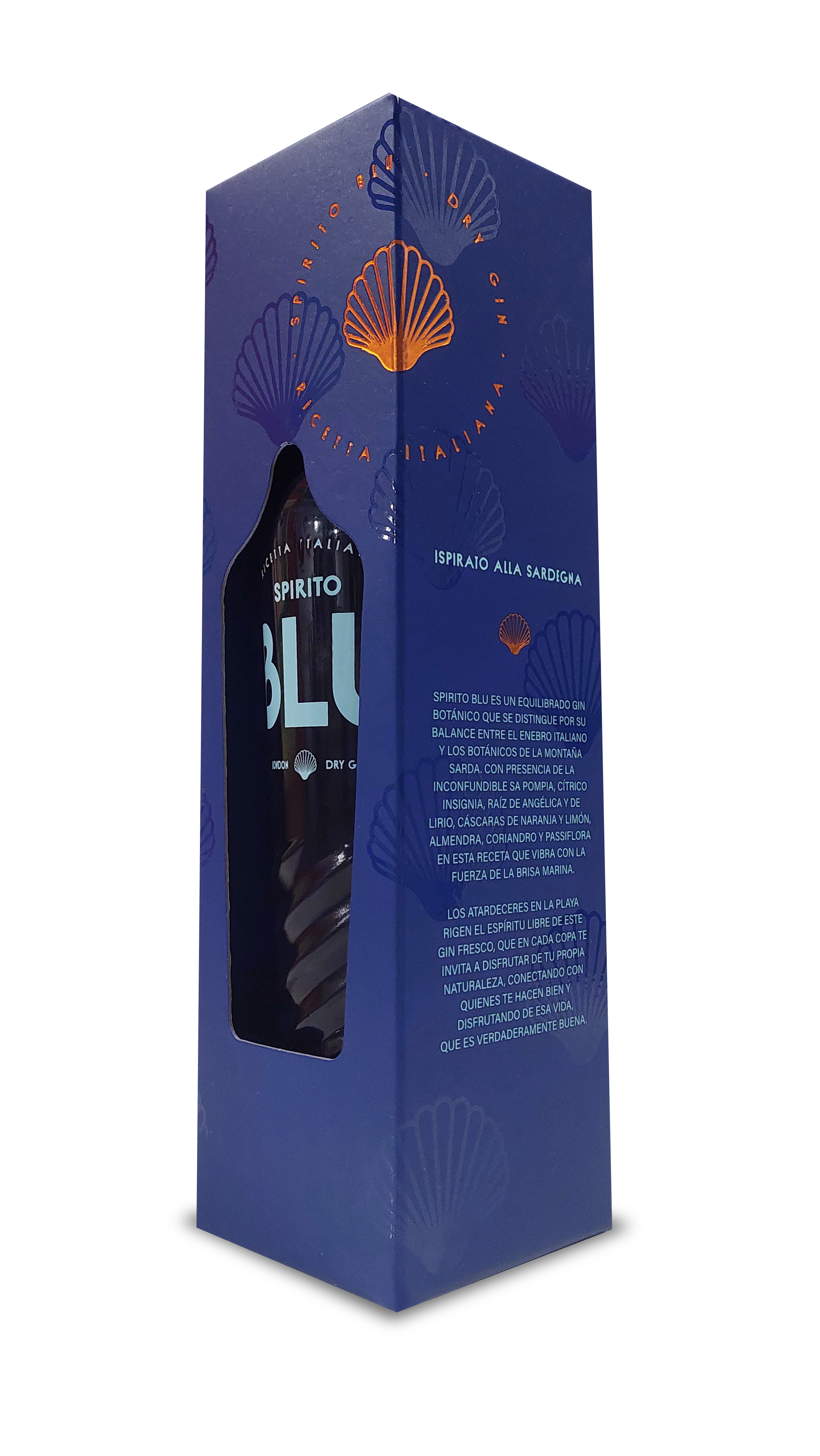 El desafío fue desarrollar un material con terminaciones premium, capaz de elevar la percepción del producto a través de detalles distintivos como laca sectorizada, stamping y un cartón de alta resistencia que pudiera contener el peso de la botella. Al mismo tiempo debía garantizar estética y funcionalidad, inspirándose en Cerdeña para trasladar al estuche el universo sensorial del gin: la frescura del mar, la calidez de los atardeceres, la brisa mediterránea y la autenticidad italiana.