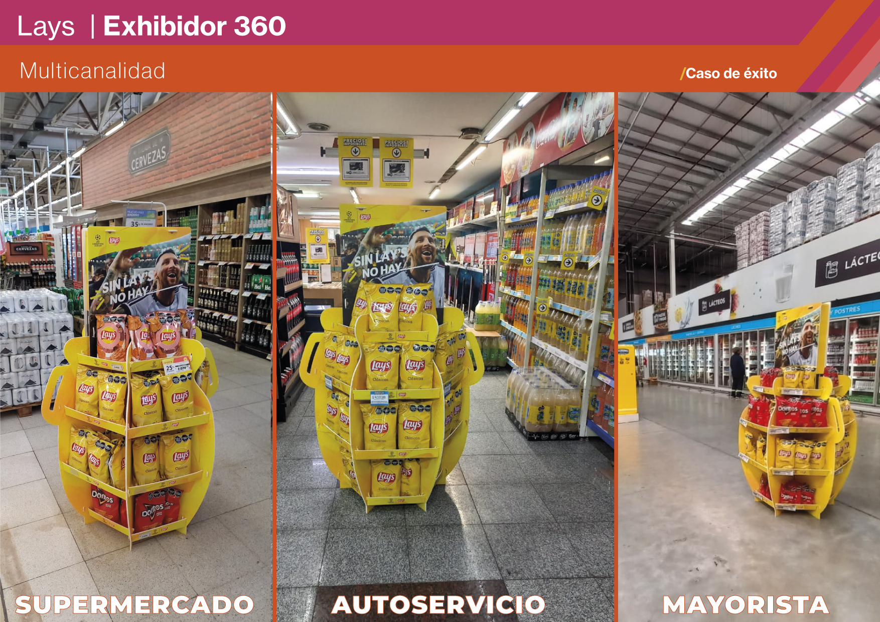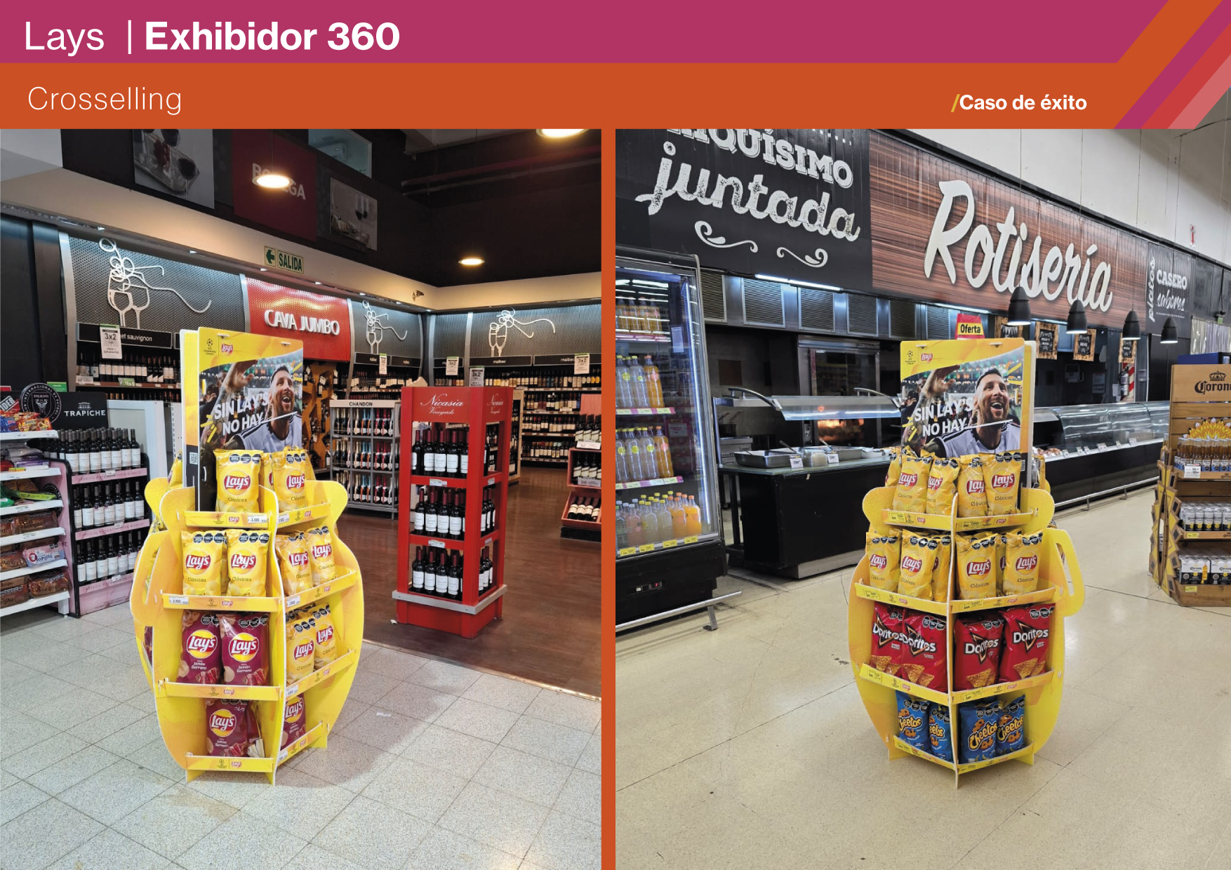El proyecto alcanzó un despliegue de 83 unidades instaladas, logrando amplia cobertura y visibilidad inmediata en supermercados, mayoristas y autoservicios. El exhibidor se consolidó como un recurso estratégico de campaña, incentivando el cross-selling con bebidas y elevando la recordación de la marca en el momento de compra. Su diseño 360° transformó la exhibición en un punto focal de atracción, reforzando el vínculo emocional de Lay’s con el fútbol y con el disfrute compartido. La presencia de Messi amplificó el impacto, proyectando a la marca con una estética global, aspiracional y cercana al consumidor. El resultado: un elemento funcional, masivo y memorable, que convirtió al PDV en extensión de la campaña.