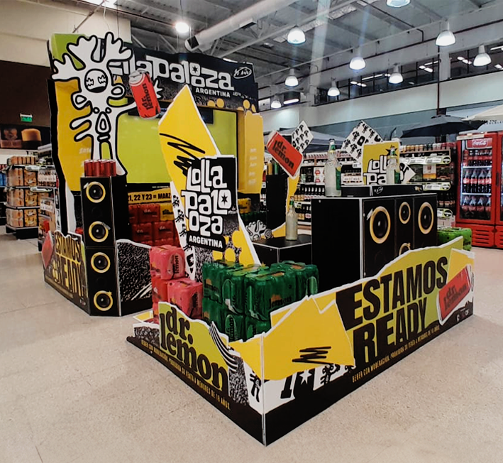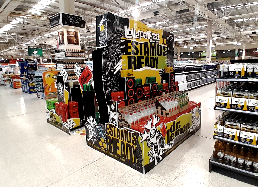 Desarrollar un material de alto impacto y disruptivo con grandes dimensiones, para ser ubicado en el canal de retail, que llevara a la marca al evento Lollapalooza, generando una interacción desde la creatividad y experiencia con los consumidores. No solo poder exhibir el producto, sino interactuar con la marca. Un objetivo importante a lograr, desde lo comercial, era una exhibición con muy buena carga de producto, para ganar inventario y volumen incremental.