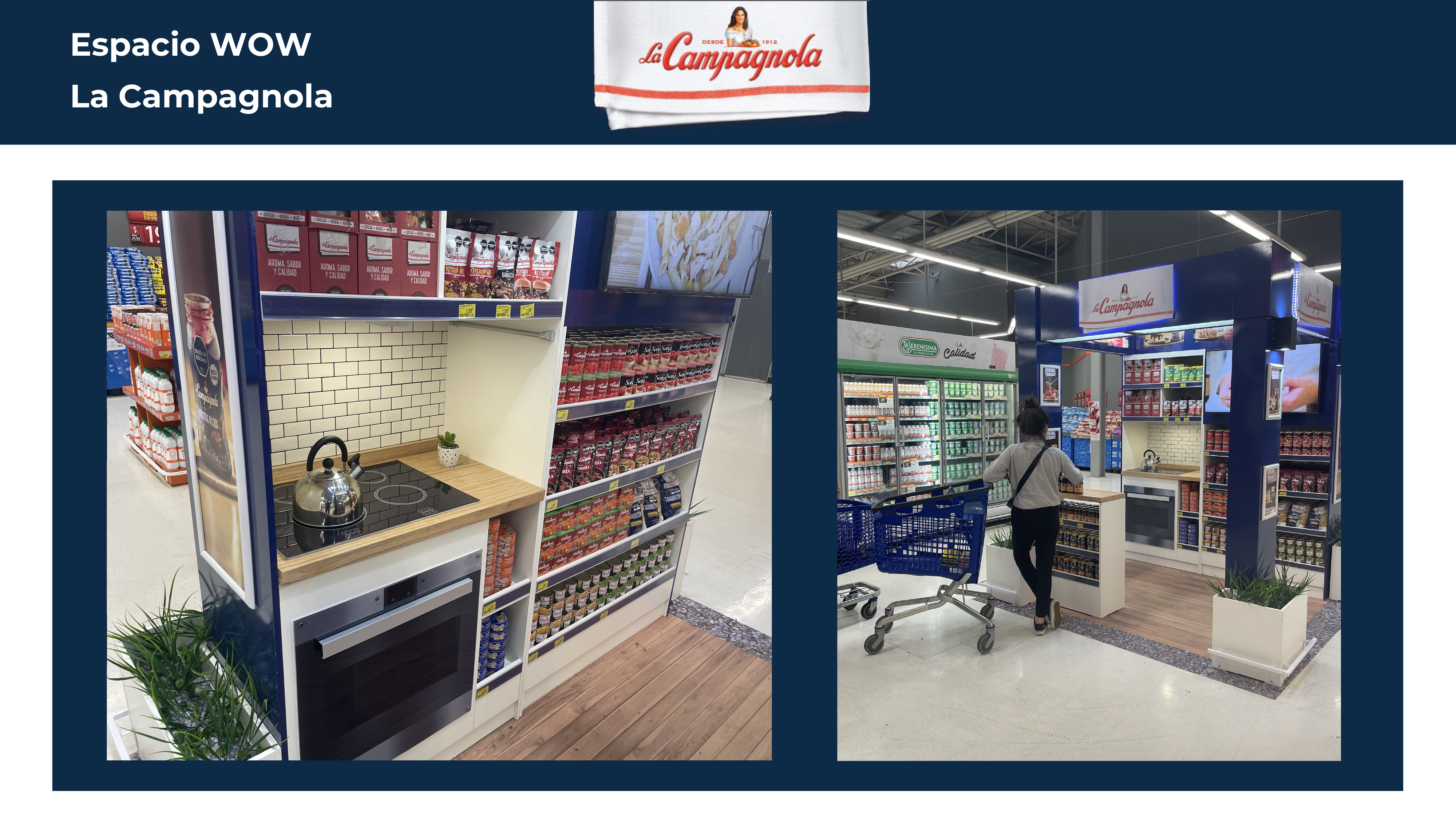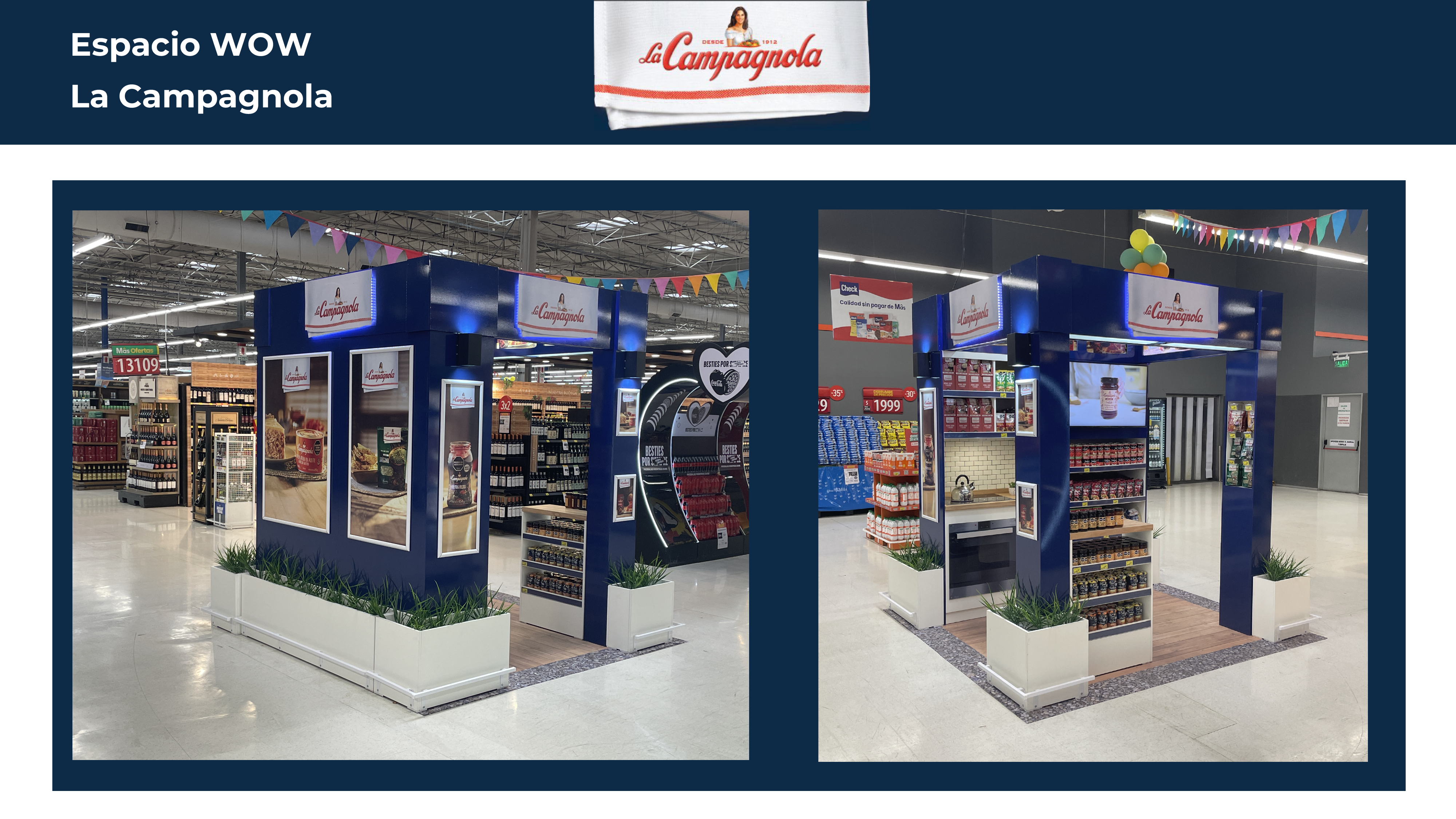 La Campagnola, líder de categoría con casi todos sus productos, nos pidió una solución para SALIR de la góndola, y generar una gran presencia en Exhibiciones Secundarias y Especiales del canal moderno de aprox. 10m2.