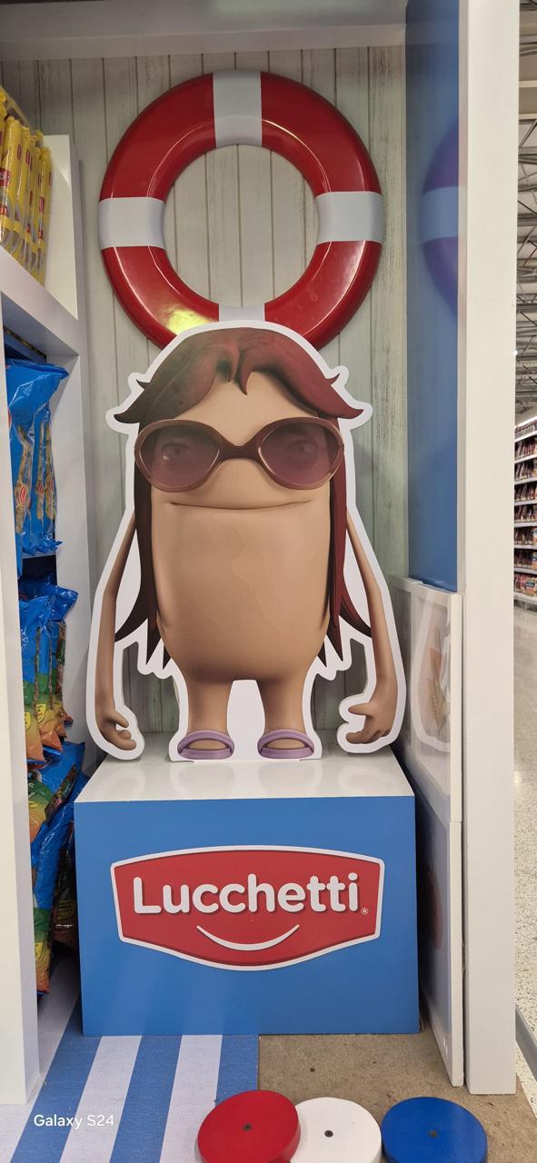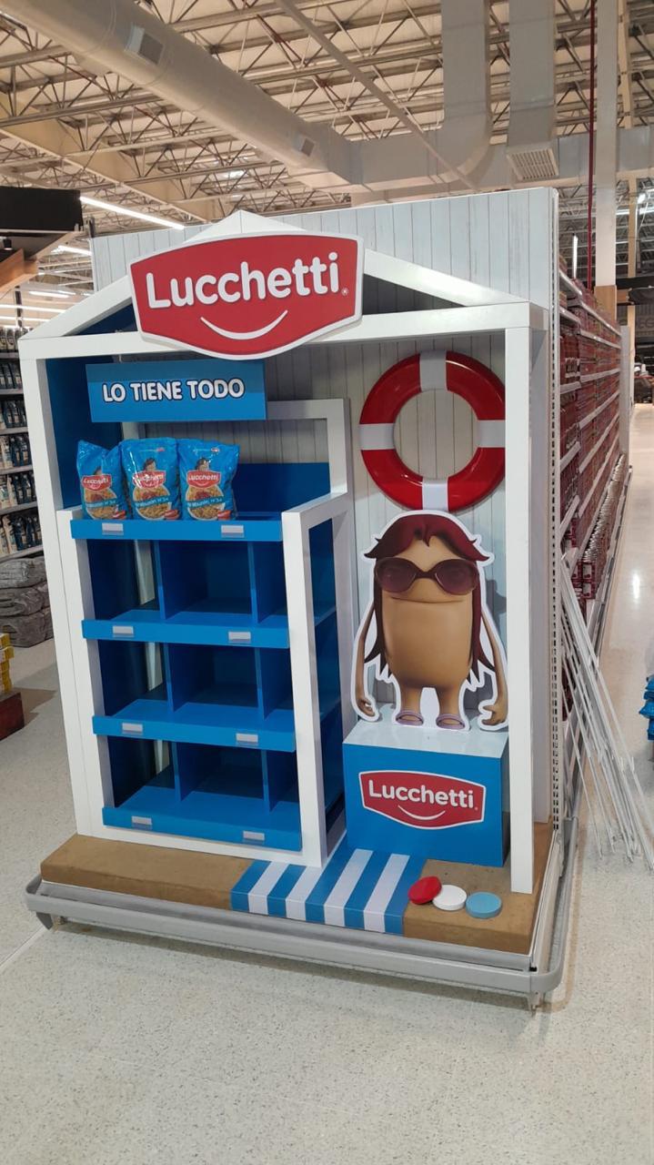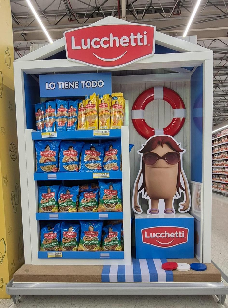 Se buscó impacto y originalidad con la combinación entre el fuerte icono de la marca Mamá Lucchetti y las típicas carpas que se encuentran en los balnearios, siendo una característica de las playas de la costa argentina.
