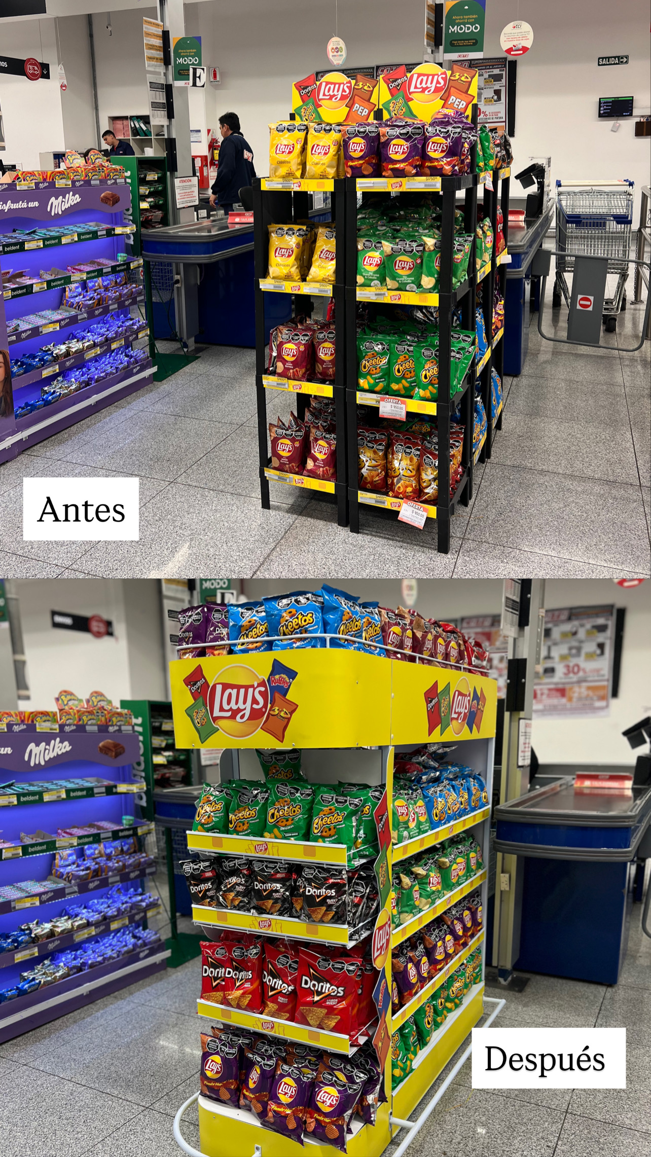 • Exhibidores activos en checkout generaron mayor impulso de compra y visibilidad destacada para Lay’s y otras marcas