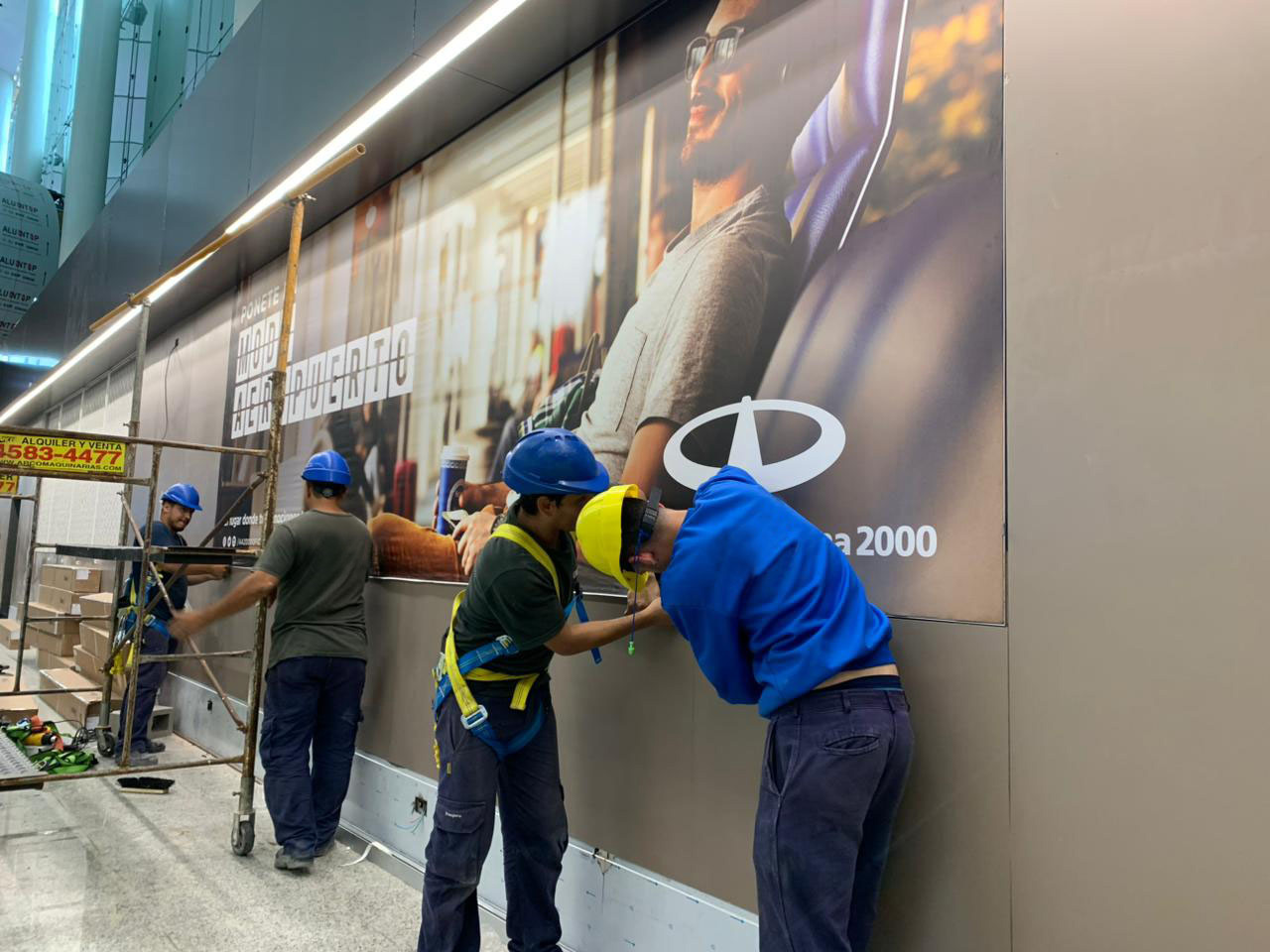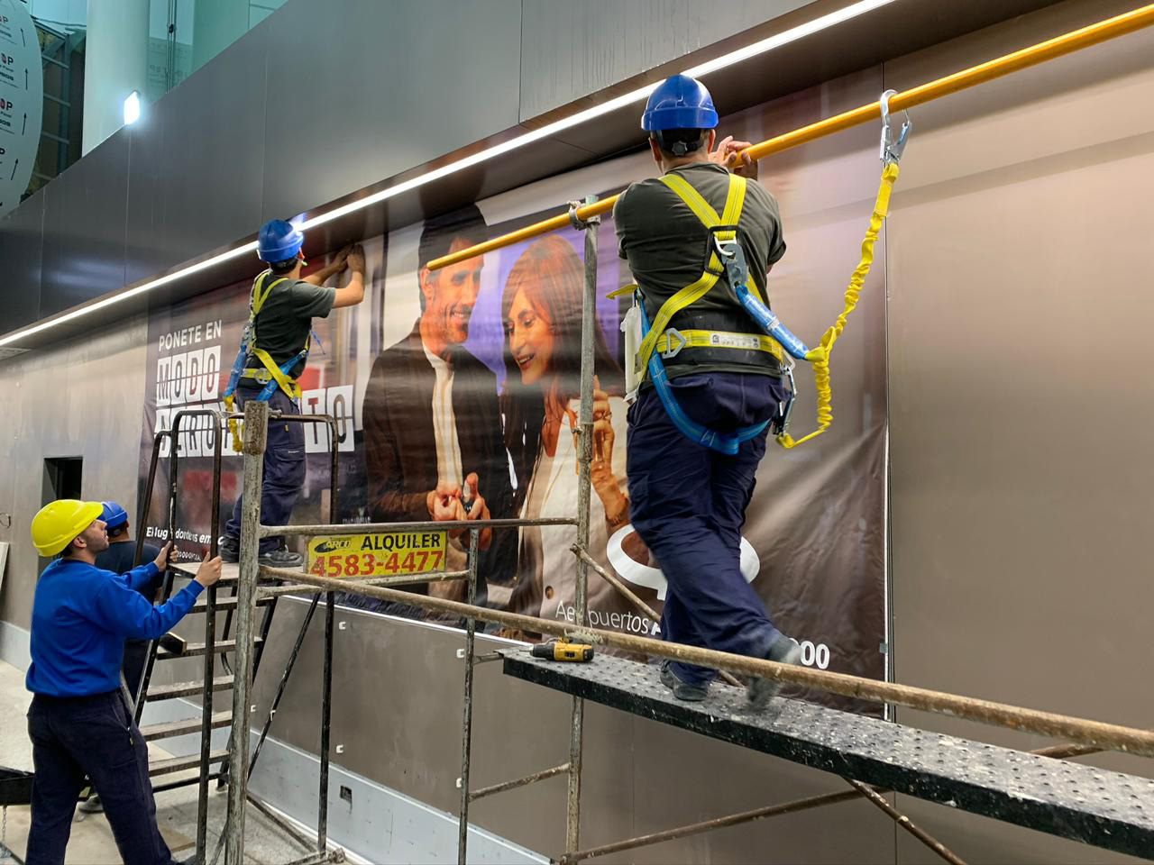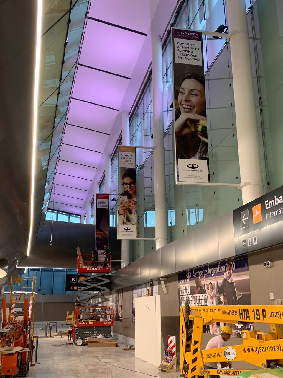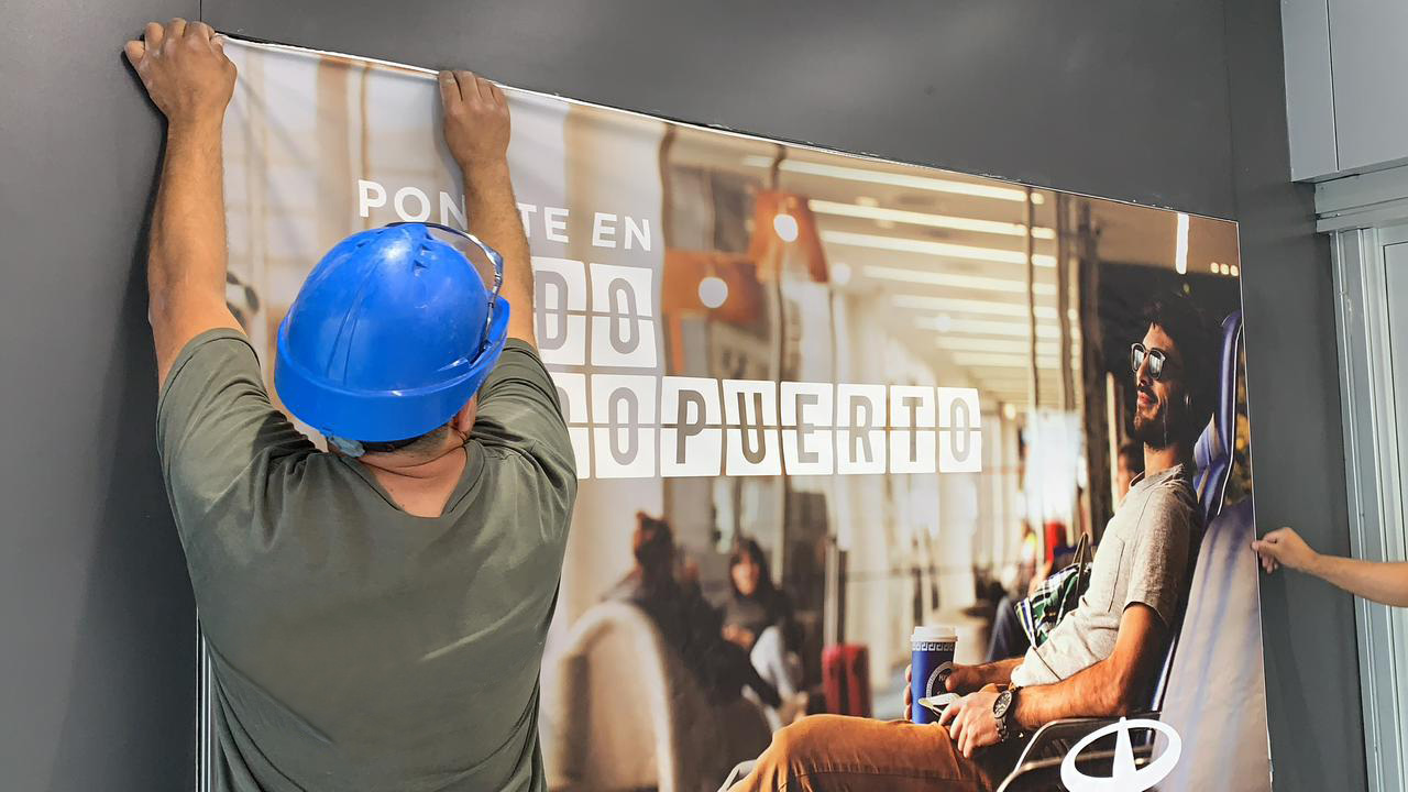 Durante la construcción de la nueva terminal del aeropuerto de Ezeiza, el cliente necesitaba un sistema de cartelería publicitaria más eficiente, que redujera los tiempos de recambio de gráficas, disminuyera la dependencia de mano de obra especializada y optimizara los costos logísticos y de implementación de las campañas.