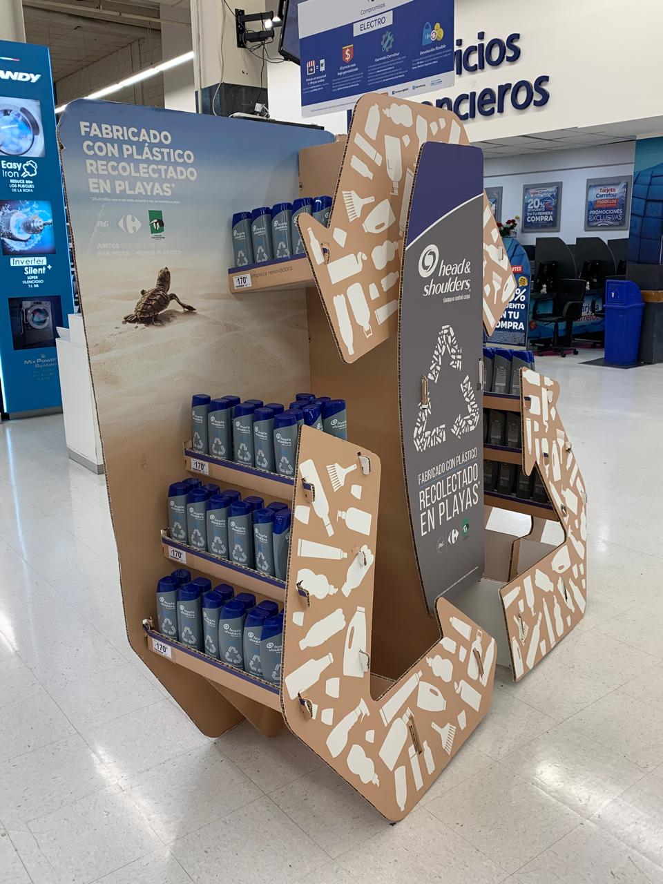 Se desarrollo en un material conocido por su trazado sustentable. Su diseño modular permitió adaptarse a distintos espacios y canales, asegurando una exposición óptima del producto y facilitando la rotación y reposición.
