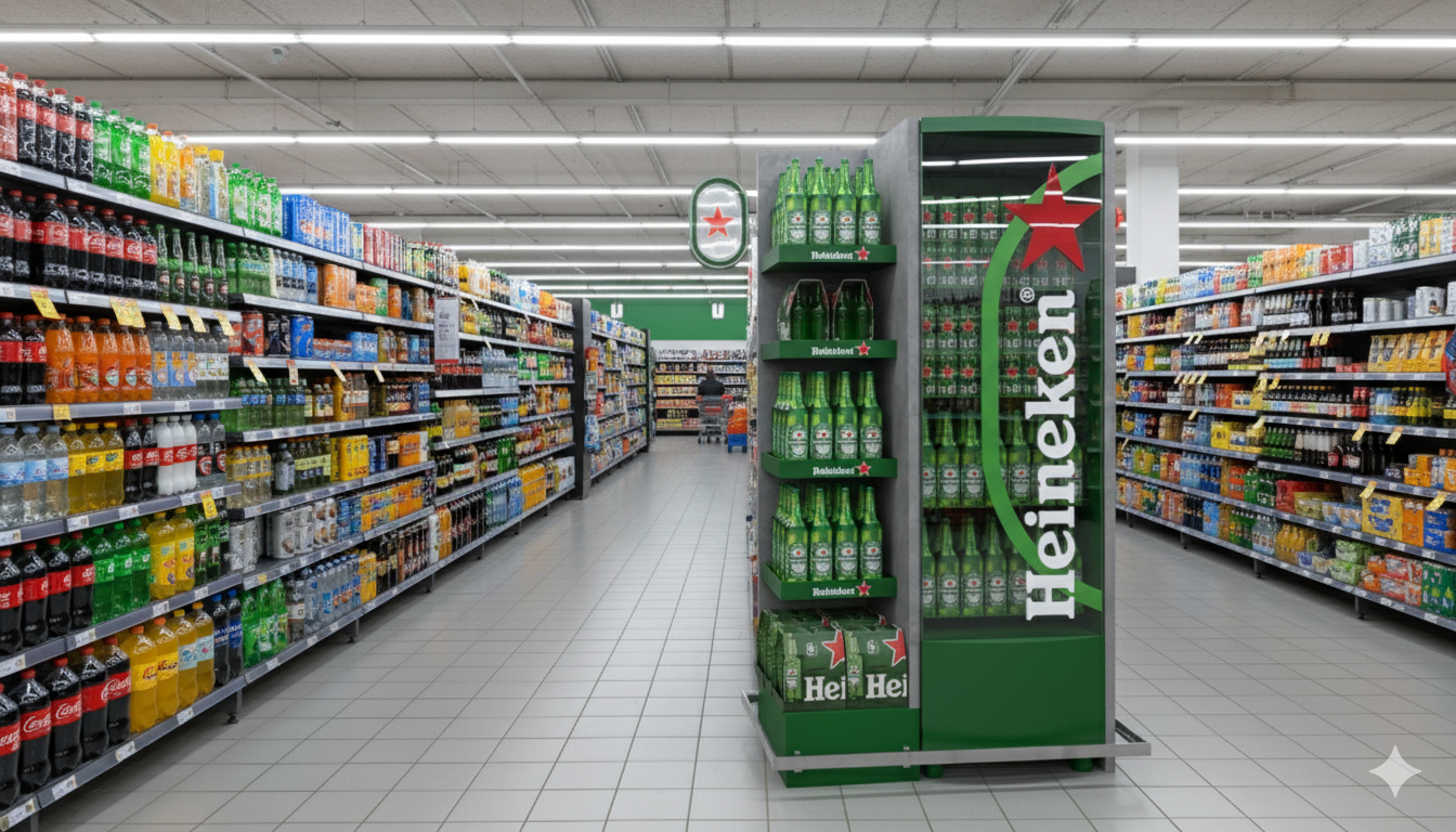 HNK, tiene un manual de marca internacional en lo que se refiere a materialidades para proponer dentro de una campaña, en este caso buscaba una campaña integral de varias piezas de POP pesado que sean durables inspiradas en el ambiente urbano, cosmopolita, en donde el bullicio y el concreto es el lienzo perfecto de la marca. Por ello la campaña debia crear una familia de elementos adaptables a diferentes formatos de canales y situaciones de exhibición teniendo como principal premisa respetar el look & feel de la marca ( que seria validado por global ) y que sea versatil para cargar cualquier calibre y con graficas intercambiables para poder tematizar con las acciones que la marca tiene a lo largo del año, la F1 o la Champions League. El foco robustez, visibilidad y foco en la estrella.